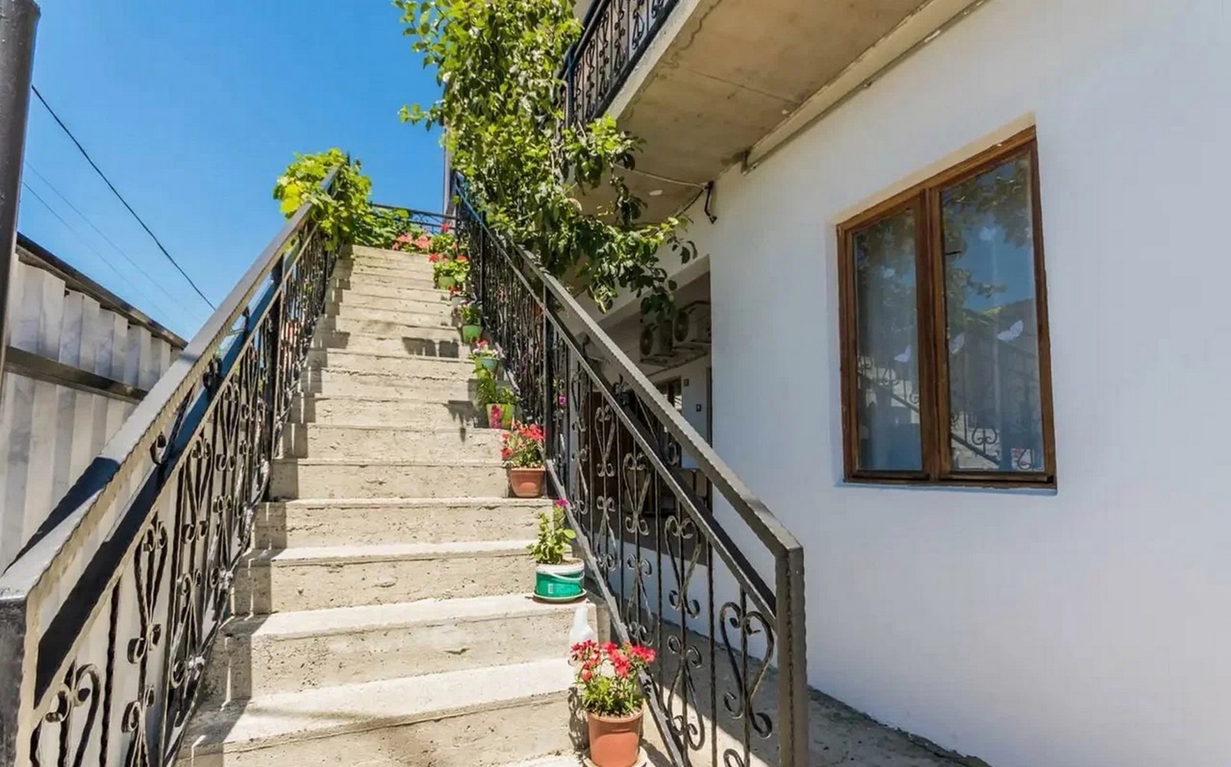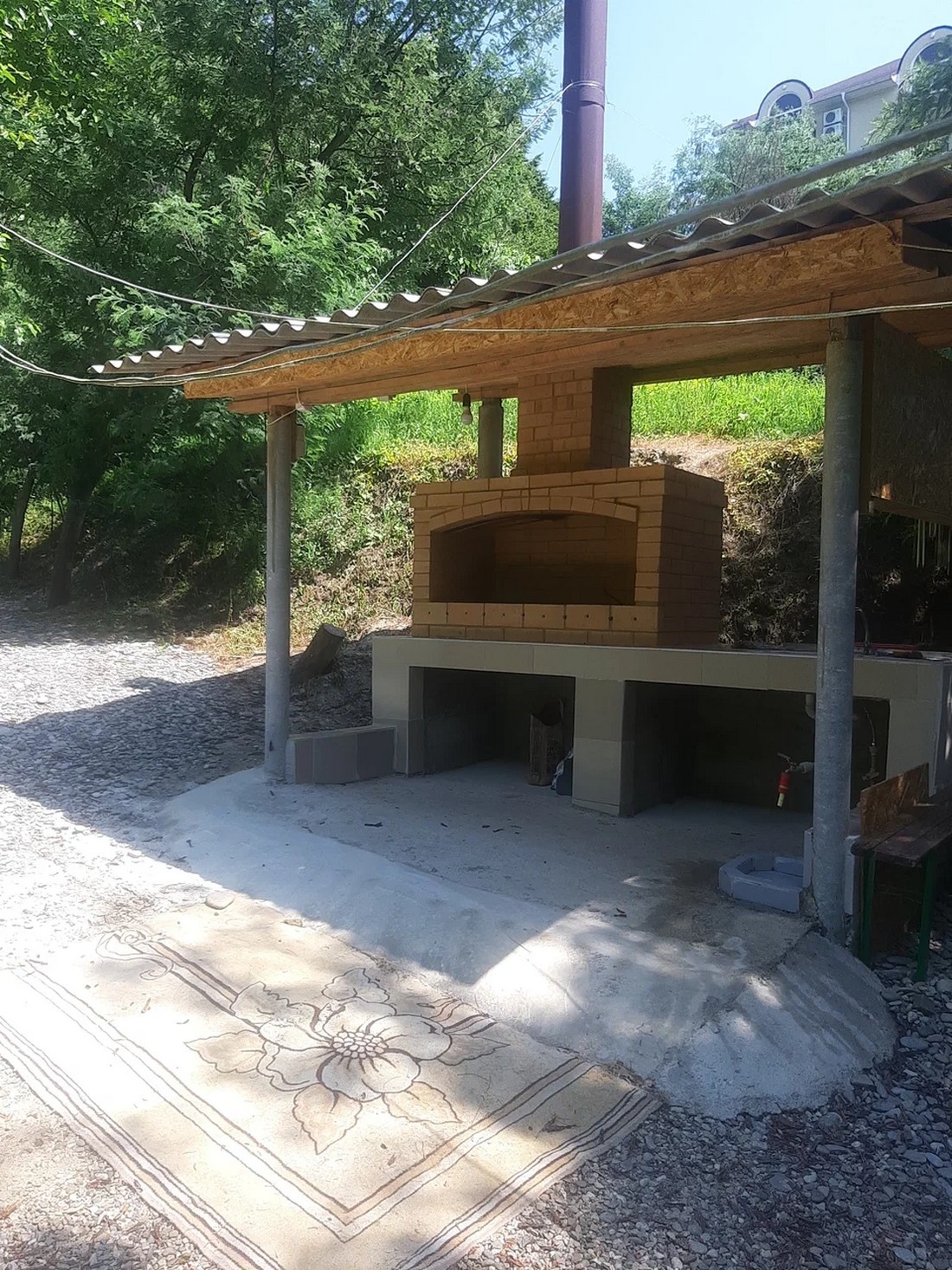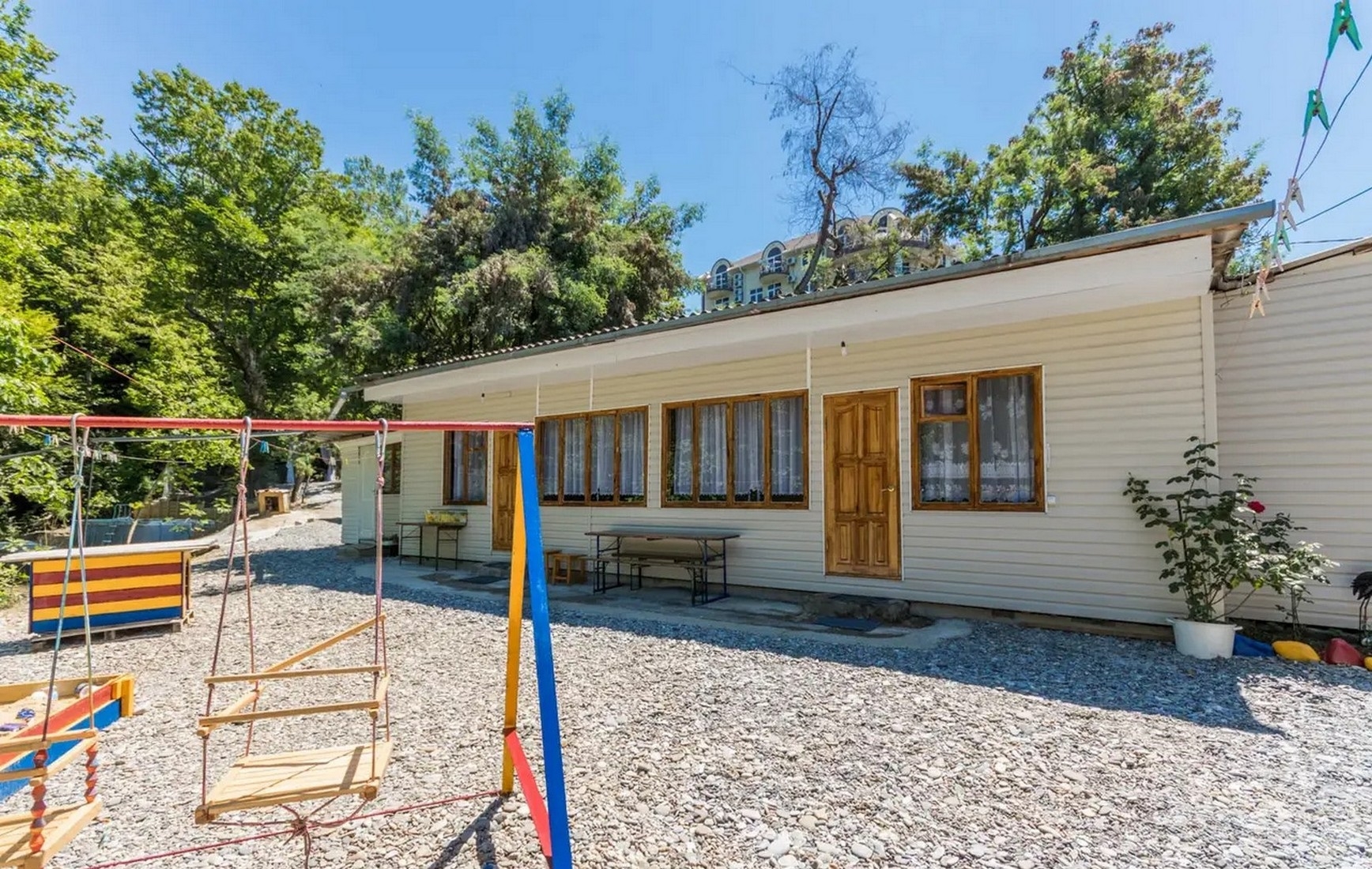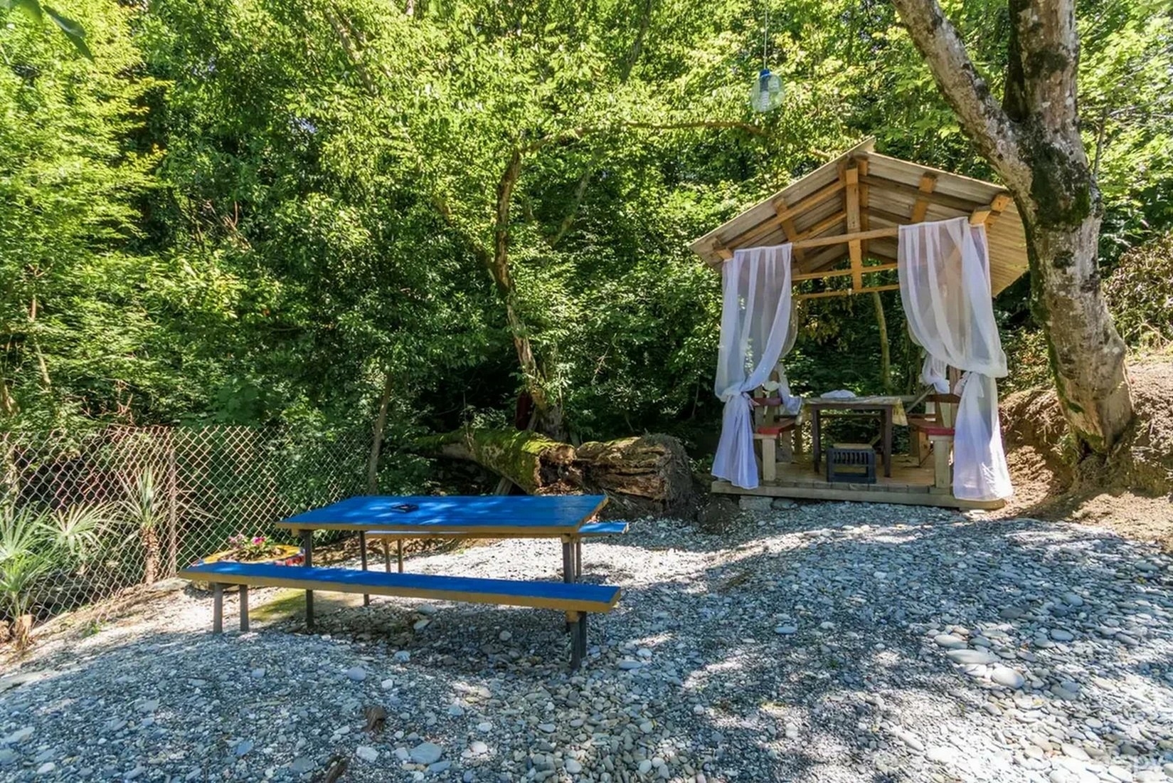 До пляжа 600 метров, спокойным шагом минут 10. Пляж в нашем районе в отличии от центрального - это не камни и плиты, а галька и песок. На заднем дворе дома есть оборудованная площадка, которая выходит в лес. Внизу пробегает ручей, а над ним установлена большая беседка для отдыха. Благодаря такому расположению, на заднем дворе всегда прохладно даже в жаркие летние дни.